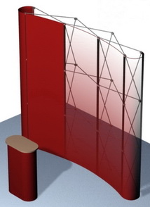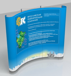 В основе стенда лежит легкая, складываемая по типу «зонтик» алюминиевая несущая конструкция. На магнитные ребра жесткости с помощью магнитной ленты крепятся гибкие, сворачиваемые в рулон панели. Перевозится в бокс-трибуне.